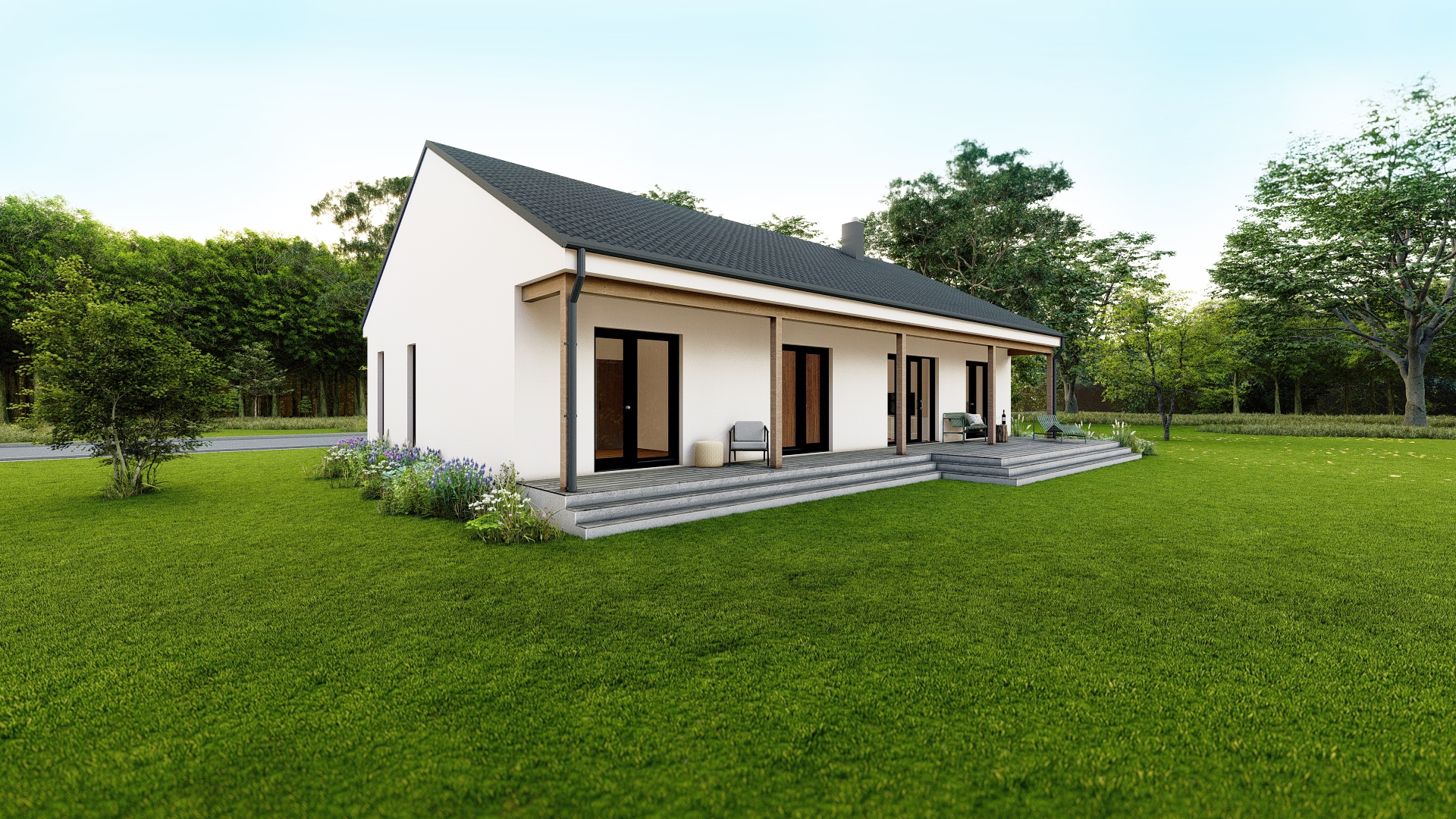 Dům Neronet je navržen pro maximální pohodlí všech členů Vaší rodiny. Neronet je designově čistý dům na obdélníkovém půdorysu s vnějšími rozměry 9,0 x 16,0 m a velkorysou vnitřní dispozicí 4+kk. Jako první Vás uvítá prostorné zádveří s místem pro vestavěnou skříň i lavici na přezutí či háčky pro kabáty. Poté vstoupíte do prostorné a světlovodem prosvětlené chodby, odkud je přístup do dvou pokojů pro děti, koupelny s vanou a sprchou a na samostatnou toaletu. Dostatečně velká technická místnost je v dnešní době nutností, leč ne vždy samozřejmostí. Opravdové srdcem domu utváří obývací pokoj, kde se můžete v zimě sejít u plápolajícího krbu nebo si díky velkému oknu užít podvečer na terase, kterou můžeme na Vaše přání částečně zastřešit, jak je naznačeno ve vizualizacích. Ve společném prostoru domu je rovněž umístěn dostatečně velký jídelní stůl a prostorná kuchyň, kterou doplňuje praktická spíž. Hlavní ložnice přístupná z obývacího pokoje disponuje francouzským oknem na terasu, privátní koupelnou a šatnou, kterou ocení zejména ženy.