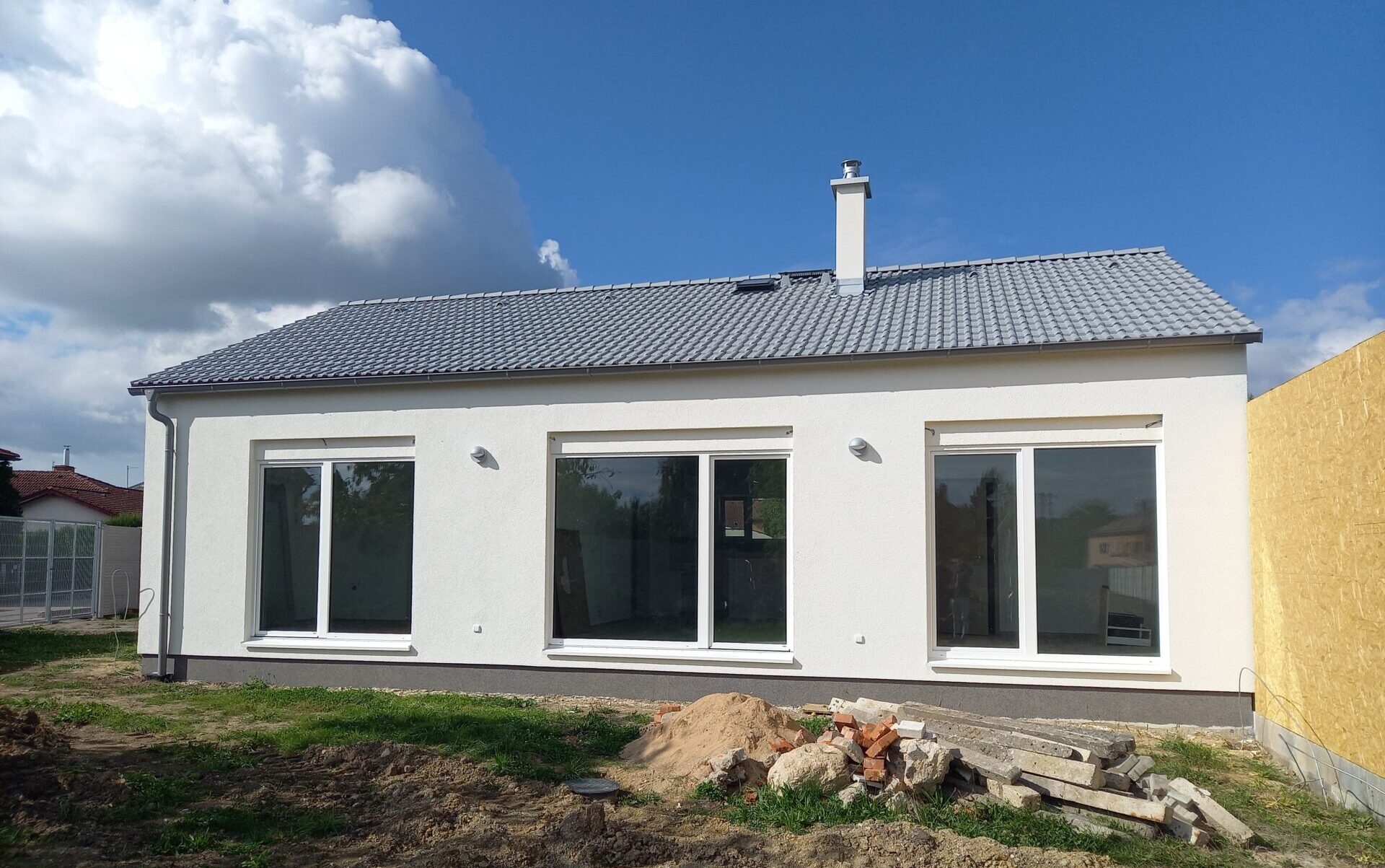 Velkou výhodou v konstrukční přípravě bylo, že původní návrh domu je rovněž v difuzně otevřeném systému s minimálními odlišnostmi vůči našemu panelu DMK Difu. Díky tomu jsme mohli zachovat původní projektovou dokumentaci, která je podrobně zpracována. Jedná se o dům 4+kk se dvěma koupelnami a obývacím prostorem spojeným s kuchyní, který odděluje ložnici a pokoj dospívající syna. Samozřejmostí je i technická místnost, pracovna a spíž. Dům je postaven v moderním stylu se sedlovou střechou a velkými francouzskými okny na terasu. Je vytápěn tepelným čerpadlem vzduch-voda s teplovodním podlahovým vytápěním a jsou provedeny přípravy na budoucí decentrální větrání s rekuperací tepla, fotovoltaiku na střeše, předokenní žaluzie/rolety a stříšku nad vchodem.