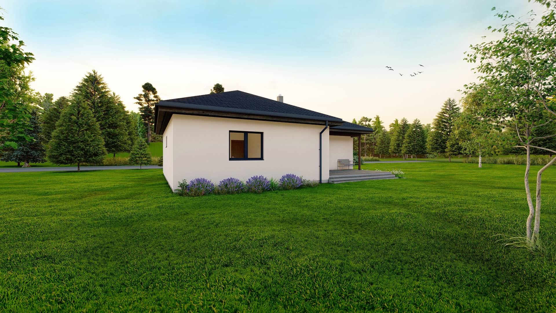 Dům Solaris představuje výhodné řešení moderního bydlení čtyřčlenné rodiny umocněné atraktivním půdorysem domu ve tvaru písmene L, které přináší žádanou terasu ukrytou před zraky sousedů a částečně chráněnou před nepřízní počasí. Obývací pokoj spojený s jídelním a kuchyňským koutem zaujímá celé křídlo domu a je s terasou propojen velkým francouzským oknem, které spolu s designově zajímavým rohovým oknem u jídelního stolu zajišťuje dostatečné proslunění společenské části domu. V domě jsou navrženy dva prostorné dětské pokoje a ložnice s přístupem na terasu. Pochopitelně nechybí koupelna vybavená vanou i sprchovým koutem, samostatná toaleta, technická místnost a dostatek prostoru pro vestavěné skříně v zádveří i v chodbě.